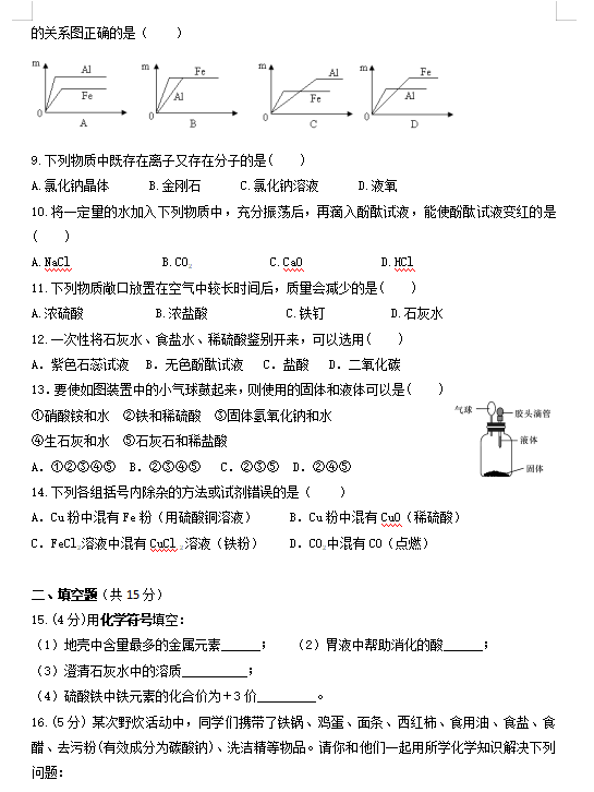 宁夏银川24中2019九下一模考试化学题(图片版)(2)