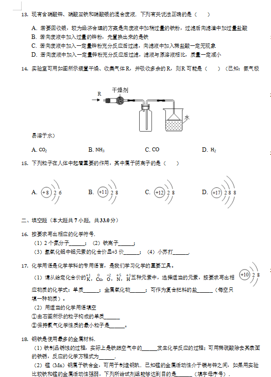 您现在的位置:中考 > 初中资源库 > 中考模拟题 > 中考化学模拟题 > 正文