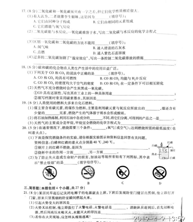 2019河南中考总复习试卷化学模拟试卷(图片版)(3)