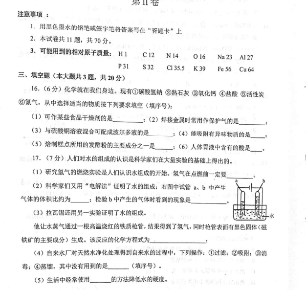 2019第二学期南开九化学第一次中考模拟试题(图片版)(5)