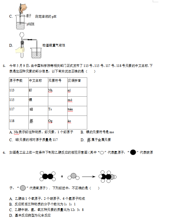 2019安徽滁州来安中考化学一模卷(图片版)(2)