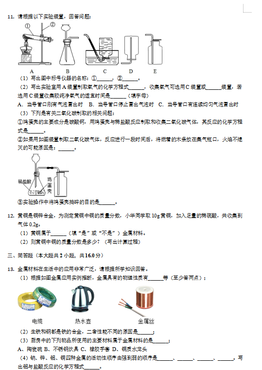 2019安徽滁州来安中考化学一模卷(图片版)(4)