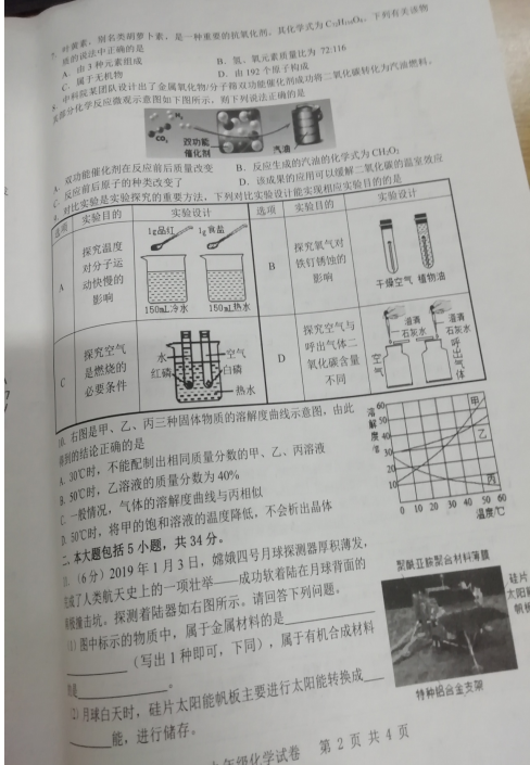 2019安徽合肥包河九第一次模拟化学卷(图片版)(2)