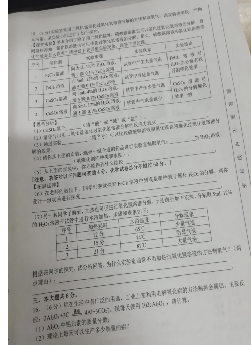 2019安徽合肥包河九第一次模拟化学卷(图片版)(4)