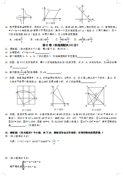 2019济南天桥九第一次模拟数学试题(图片版)(2)