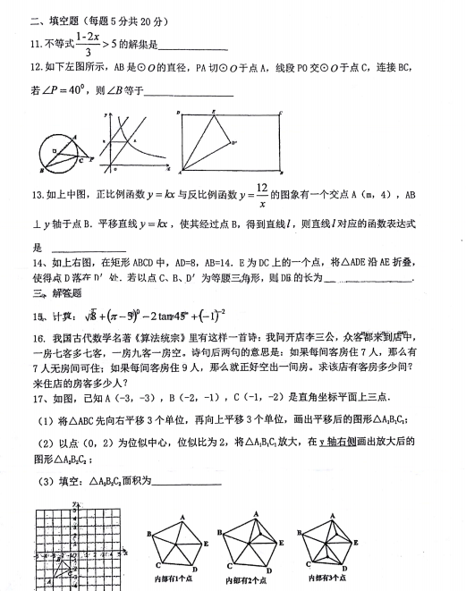 2019安徽合肥45中一模数学试题(图片版)(2)