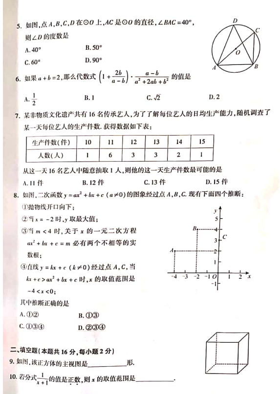 2019北京平谷区初三一模数学试卷(图片版)(2)