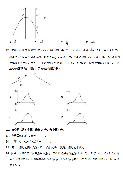 2019山东济南平阴第二中学中考数学三模卷a(图片版)(3)