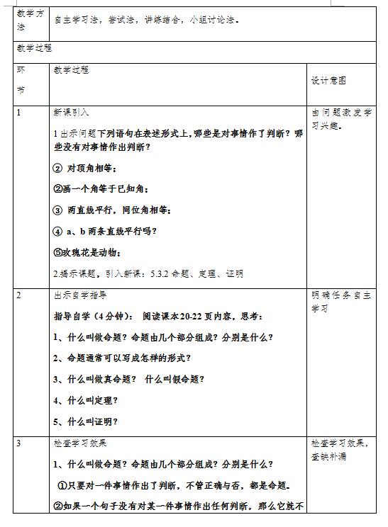 人教版数学七下教案5.3.2命题、定理、证明(图片版)(2)