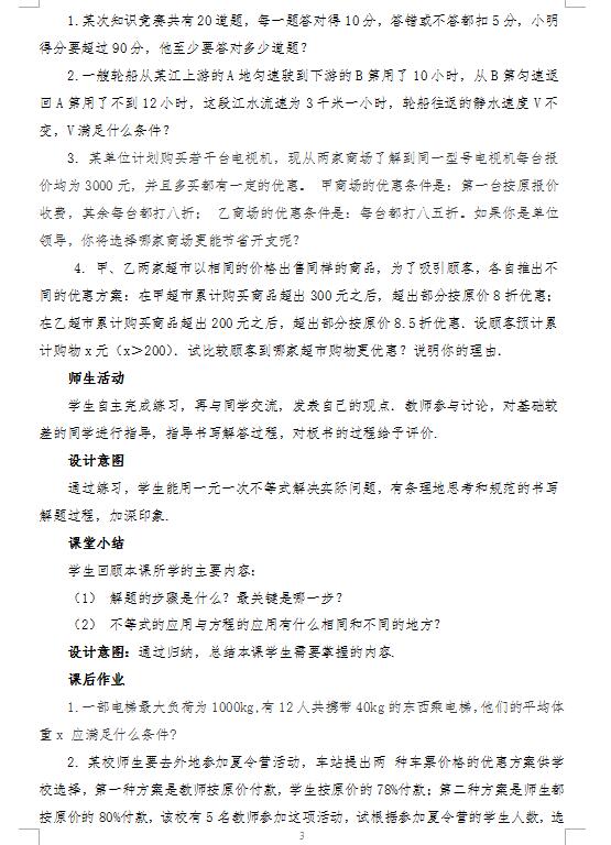 人教版数学七下9.2.2一元一次不等式的应用教案(图片版)(3)