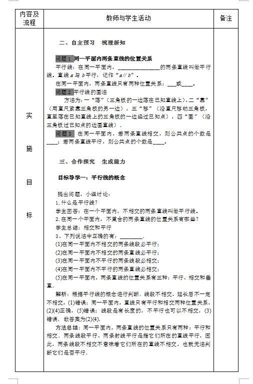 人教版七下数学5.2.1 平行线教案(图片版)(2)