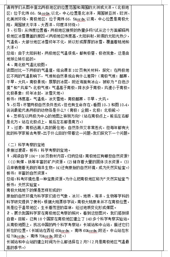 人教版七下地理第十章极地地区教案(图片版)(2)
