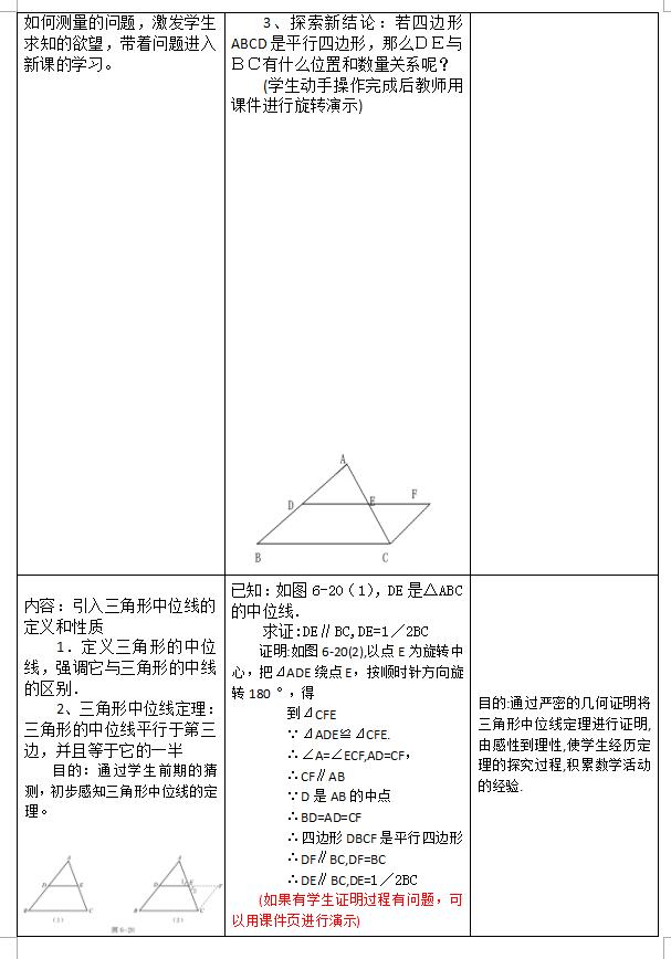 北师大版八下数学6.3三角形的中位线教案(图片版)(2)