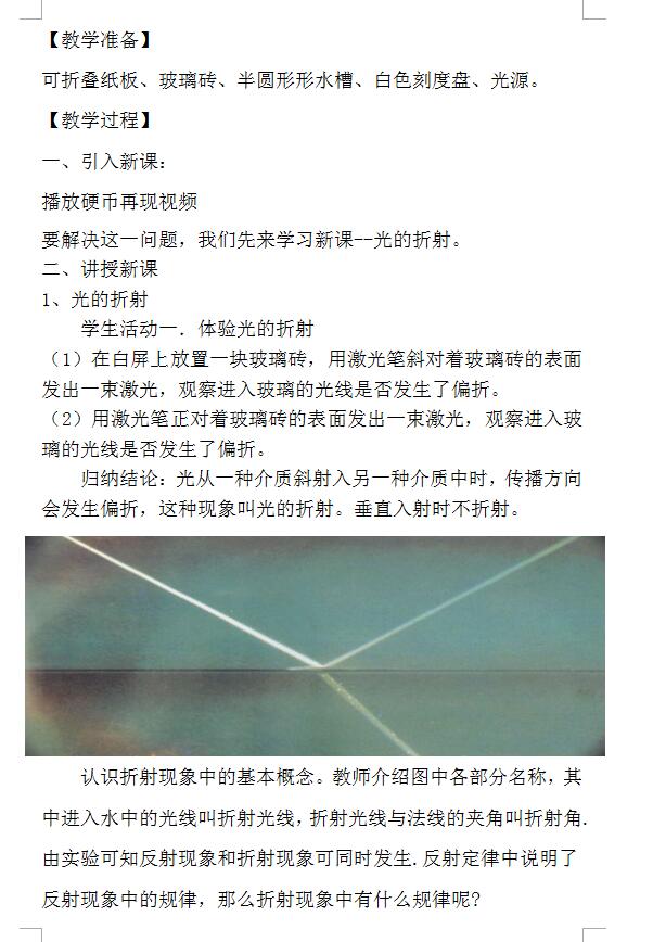 2022年人教版物理八上4.4《光的折射》教学设计(图片版)(2)