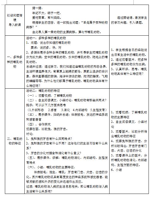 人教版生物八上5.1.7哺乳动物教案(图片版)(2)