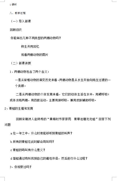 人教版八下生物 7.1.3两栖动物的生殖和发育教案(图片版)(2)