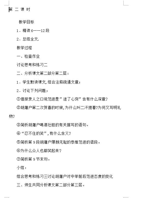 部编版语文九上22课《范进中举》教案(图片版)(5)
