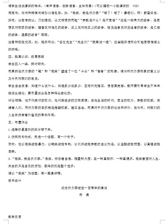 人教版九上第二单元第6课《纪念伏尔泰逝世一百周年的演说》教案(图片版)(4)