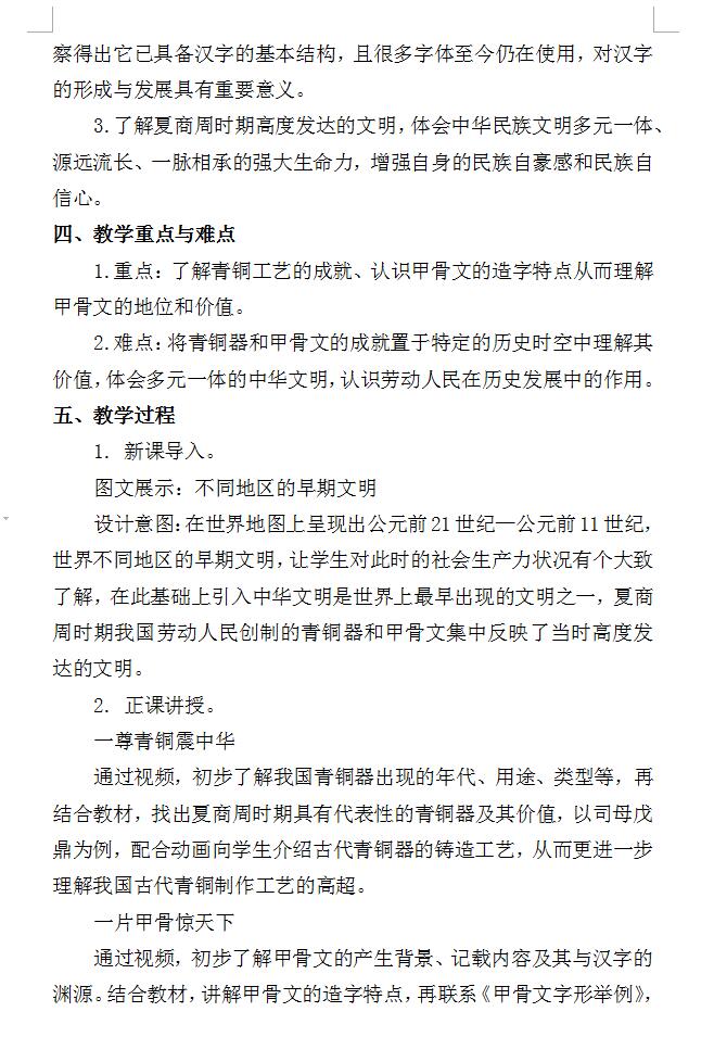 部编版七上历史第5课青铜器与甲骨文教学设计(图片版)(2)