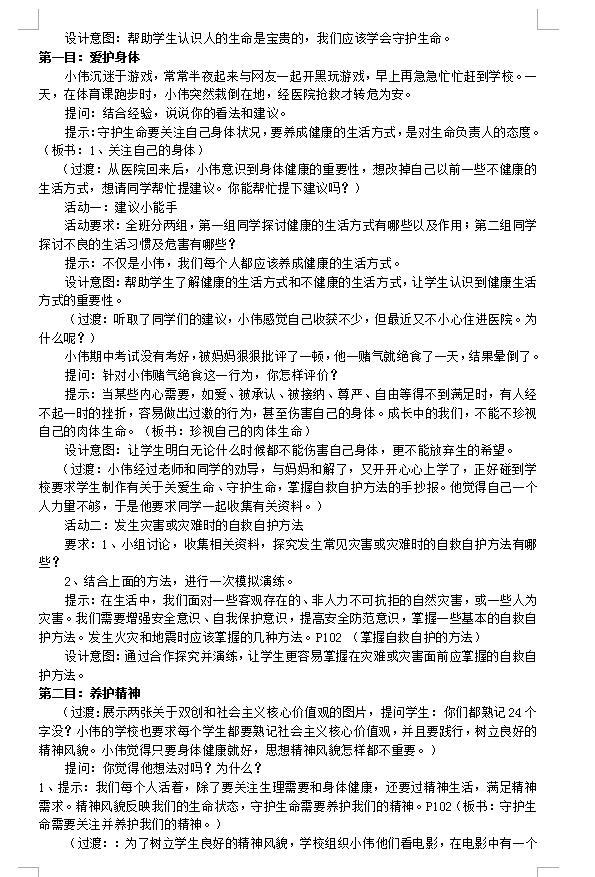 统编版七上道德与法治9.1守护生命教案(图片版)(2)
