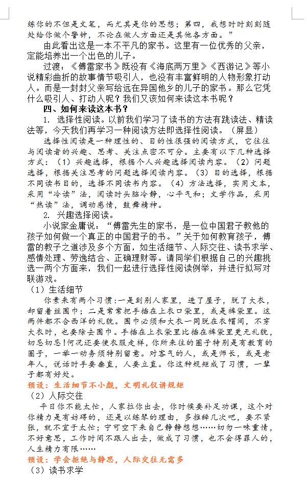 部编版语文八下第三单元名著导读《傅雷家书》教学设计(图片版)(2)