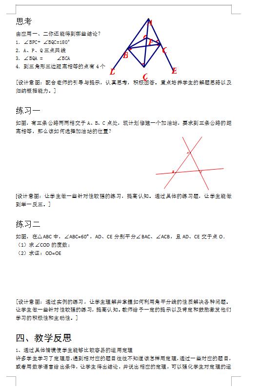 人教版八上数学12.3角的平分线性质的应用教学设计(图片版)(2)