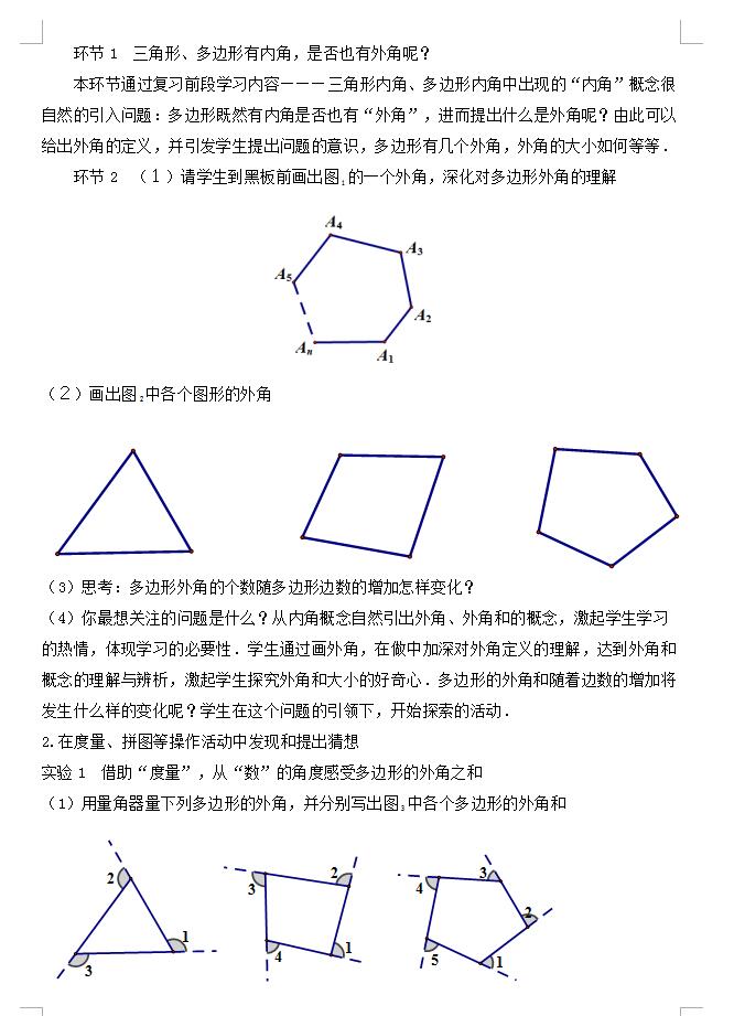 北师大版八下数学6.4多边形的外角和教案(图片版)(2)