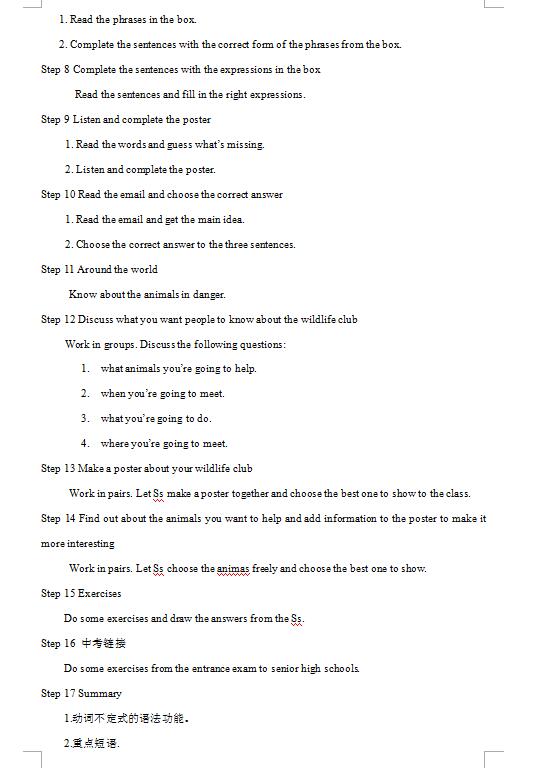 外研版八上英语Module 6 Animals in danger Unit3教案(图片版)(2)