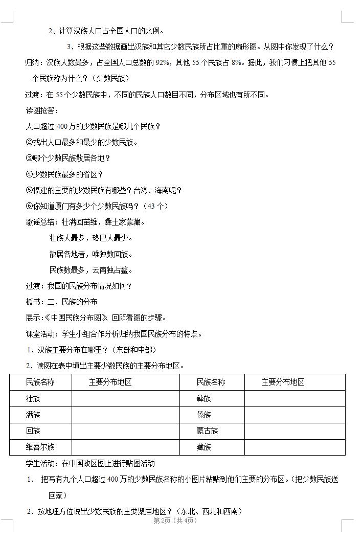 湘教版地理八上第一章第四节中国的民族教案(图片版)(2)
