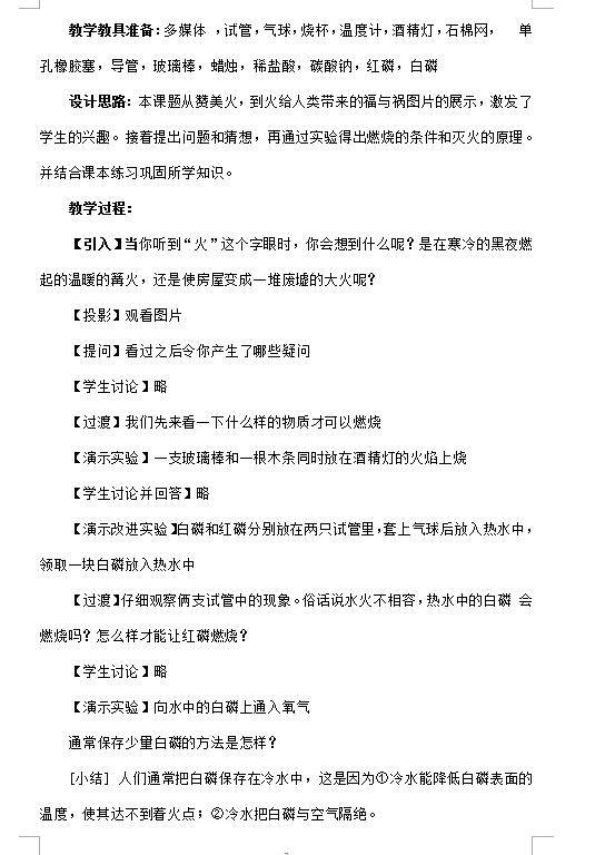 人教版化学九上7.1 燃烧和灭火( 第1课时)教案(图片版)(2)