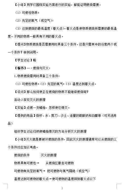 人教版化学九上7.1 燃烧和灭火( 第1课时)教案(图片版)(3)