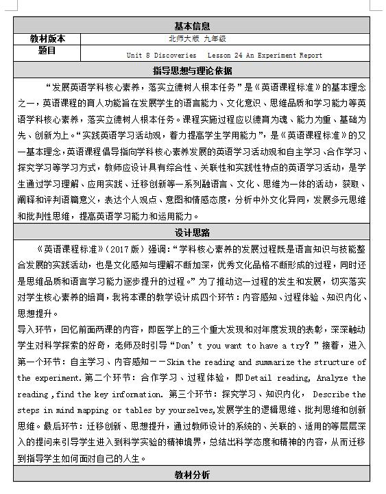 北师大版九年级全册英语Unit 8 Lesson 24教案(下载版)