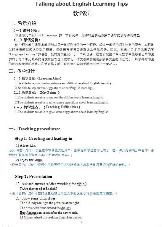 北师大版九年级全册英语Unit 1 Lesson 3教案(下载版)