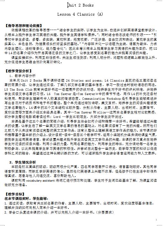 北师大版九年级全册英语Unit 2 Lesson 4教案(图片版)