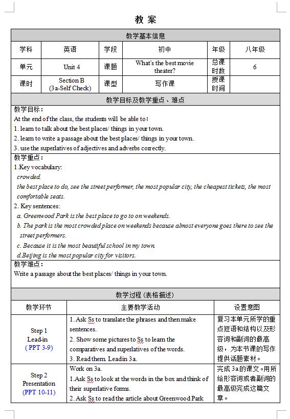 人教版八上Unit 4 Section B 3a-Self Check教案(下载版)