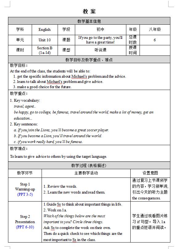 人教版Unit 10 Section B 1a-1d 教案(图片版)