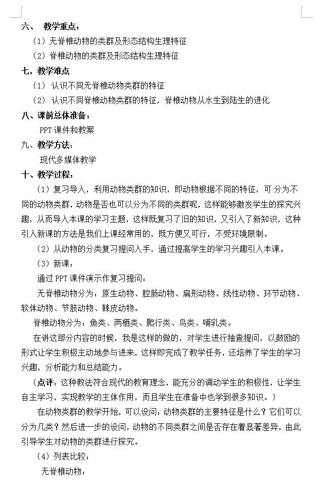人教版生物八上5.1动物的主要类群复习教案(图片版)(2)