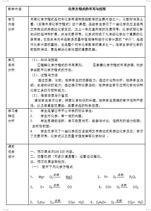 沪教版初中化学九上4.3化学方程式的书写与应用教案(图片版)