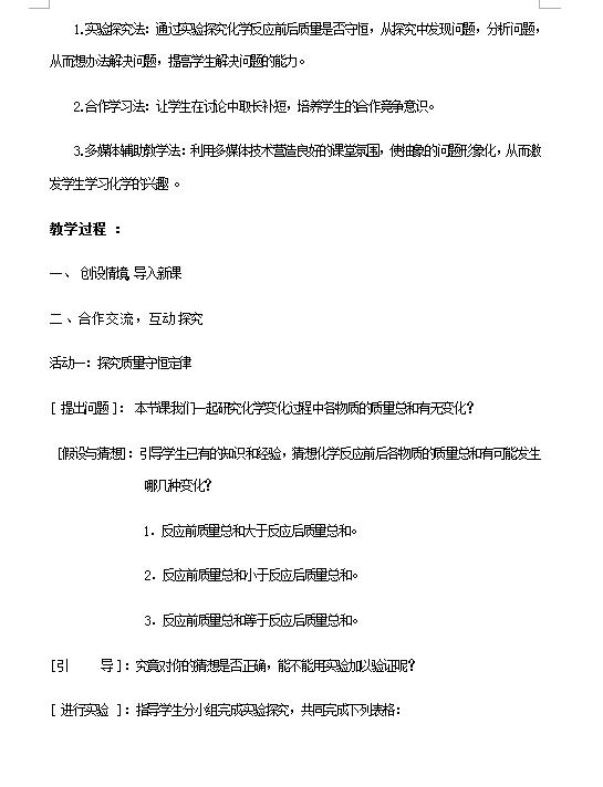 沪教版初中化学九上4.2化学反应中的质量关系教案(图片版)(2)