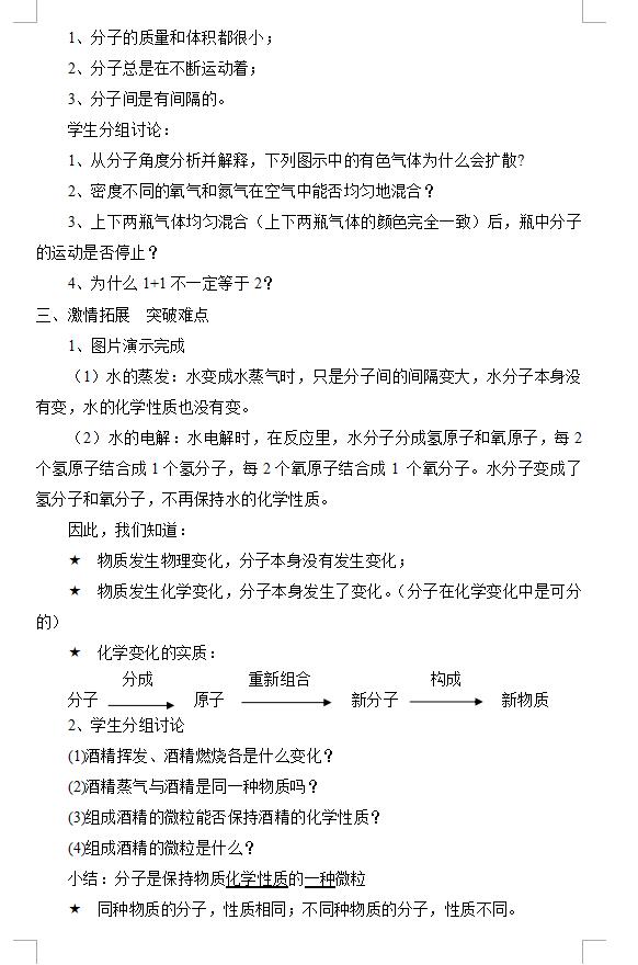 沪教版九上化学3.1.1构成物质的基本微粒 分子教案(图片版)(2)