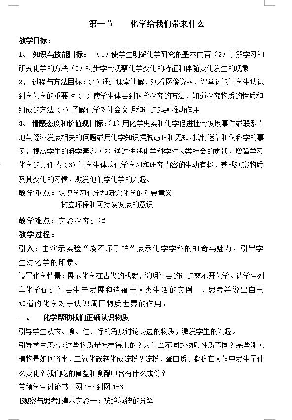 沪教版九上化学1.1化学给我们带来什么教案(下载版)