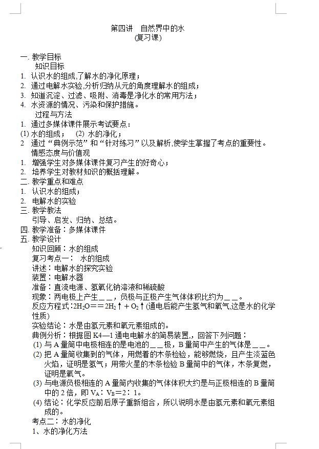 沪教版九上化学 2.3自然界中的水教案(下载版)