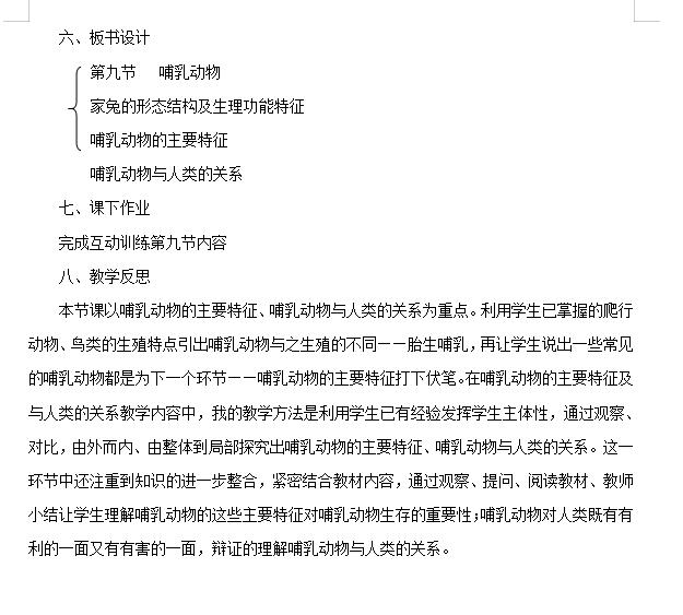 冀教版七上生物1.4.9哺乳类教案(图片版)(3)