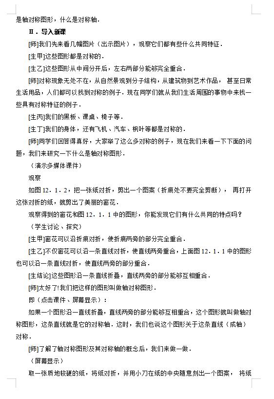 沪科版八上数学15.1轴对称图形教案(图片版)(2)