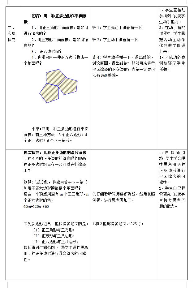 沪科版八下数学19.4综合与实践多边形的镶嵌教案(图片版)(2)