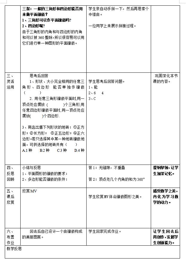 沪科版八下数学19.4综合与实践多边形的镶嵌教案(图片版)(3)
