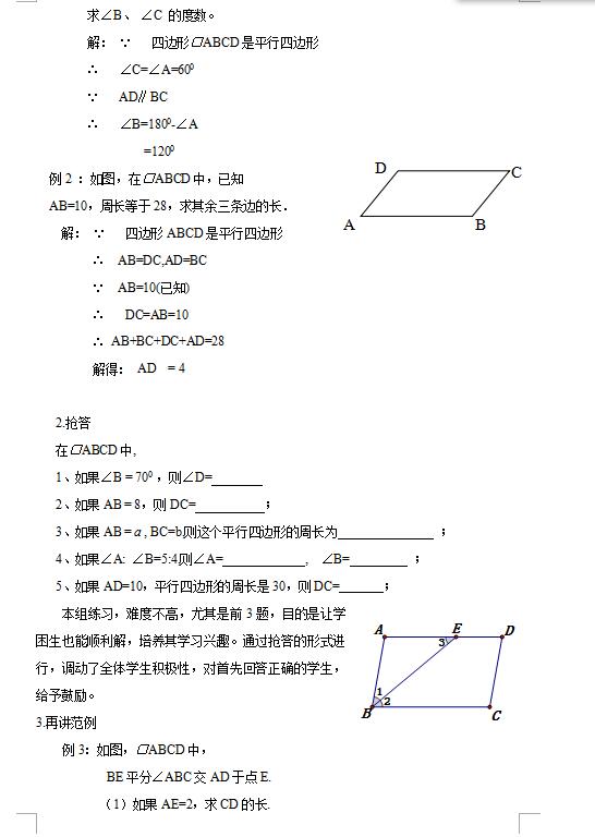 沪科版八下数学19.2平行四边形教案(图片版)(4)