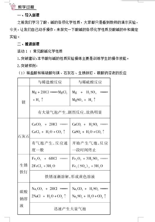 沪教版化学九下基础实验8酸与碱的化学性质教学设计(图片版)(2)