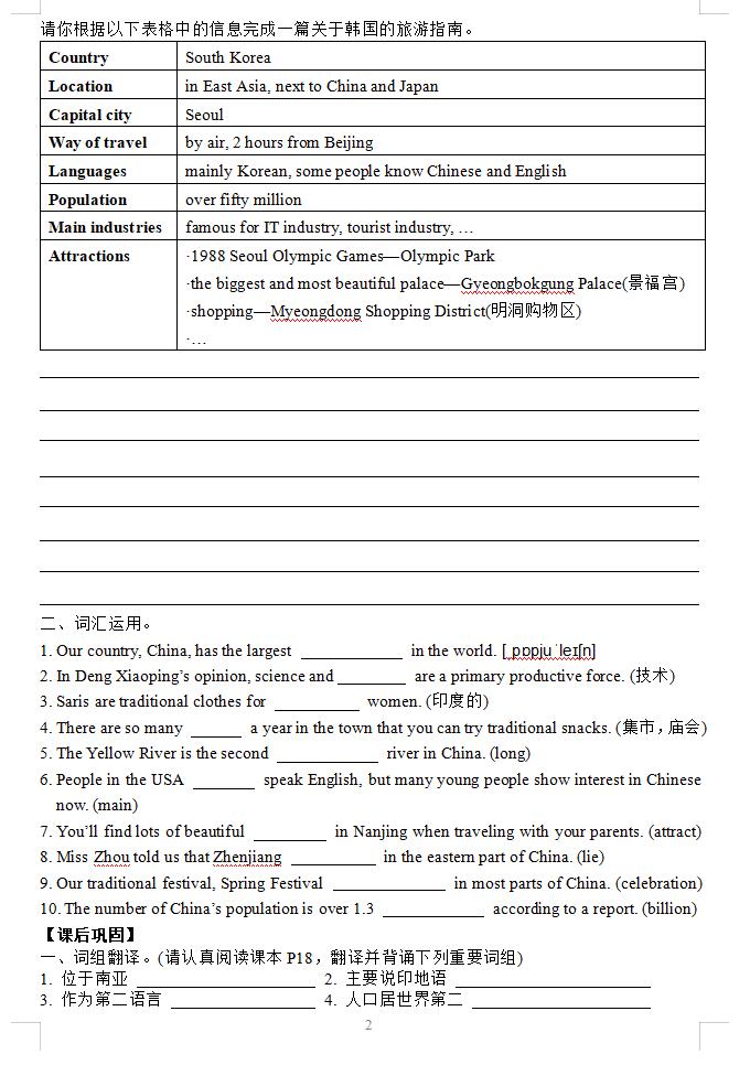 牛津译林版九下Unit 1 Asia Task 教案(图片版)(2)