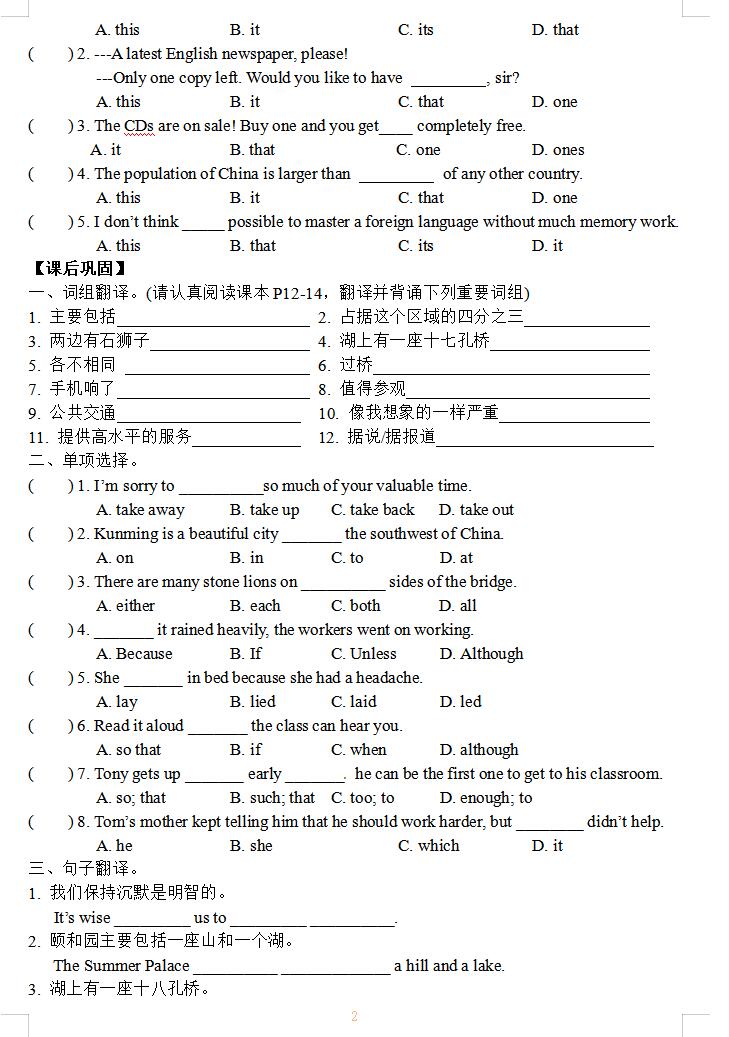 中考每日精练 英语中考考点